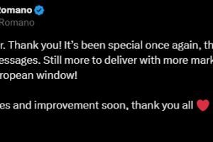 体育资讯09月02日讯 今天凌晨,欧洲五大联赛夏季转会窗正式关闭,名记罗马诺发文感谢球迷。